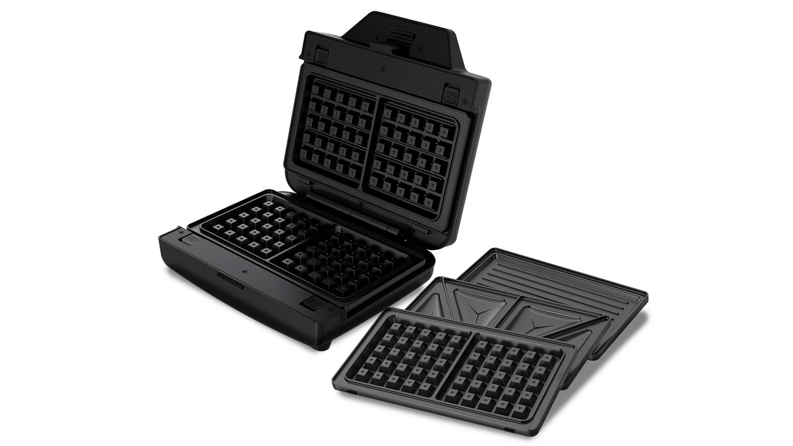 - Características técnicas: 900W: 3 placas desmontables e intercambiables: sándwich, grill y gofre | Placas con recubrimiento antiadherente de fácil limpieza | Apta para el almacenaje vertical | Indicador de funcionamiento y alcance de temperatura luminoso | Rapidez de calentamiento | Pies antideslizantes | Asa de toque frío | Libre de PFOA | Acabados en acero inoxidable | Recogecables | Calentamiento uniforme.