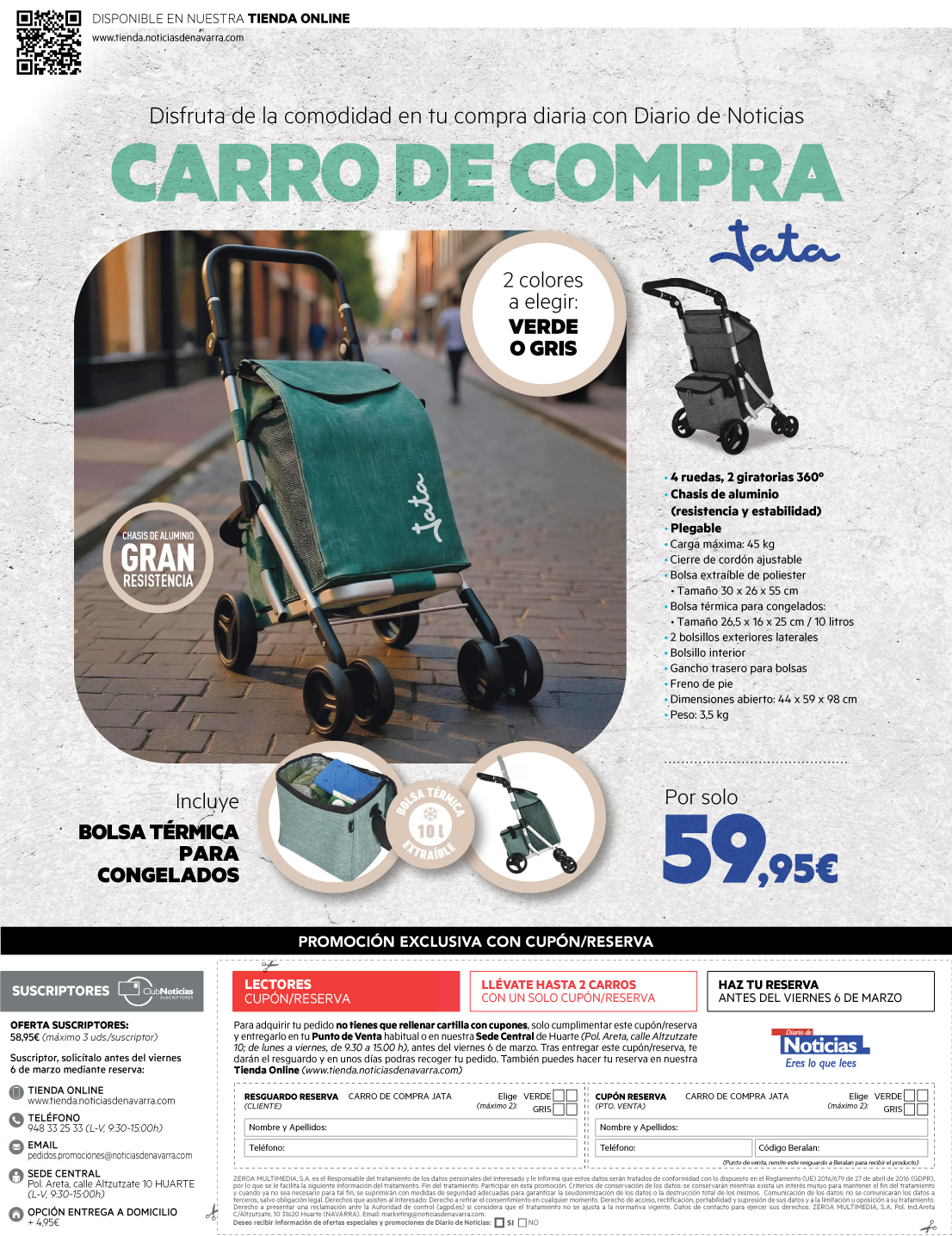 Disfruta de la comodidad en tu compra diaria con Diario de Noticias y este CARRO DE COMPRA Jata.