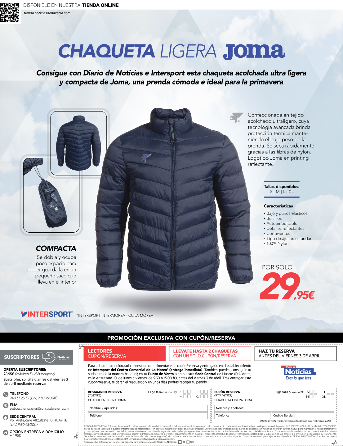 Consigue con Diario de Noticias e Intersport esta chaqueta acolchada ultra ligera y compacta de Joma, una prenda cómoda e ideal para la primavera.