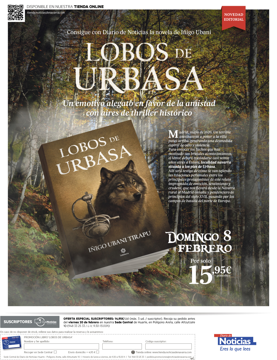 Consigue con Diario de Noticias la novela de Iñigo Ubani: LOBOS DE URBASA. Un emotivo alegato en favor de la amistad con aires de thriller histórico.