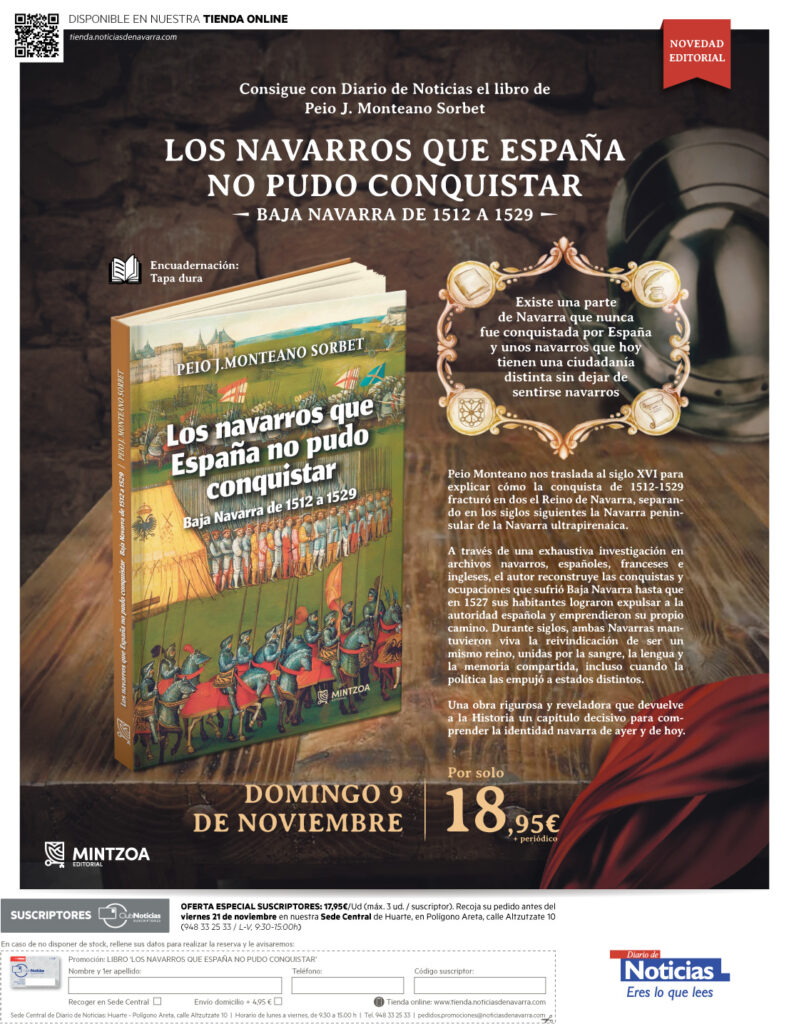 Consigue con Diario de Noticias la novedad editorial, de Peio J. Monteano Sorbet: LOS NAVARROS QUE ESPAÑA NO PUDO CONQUISTAR.