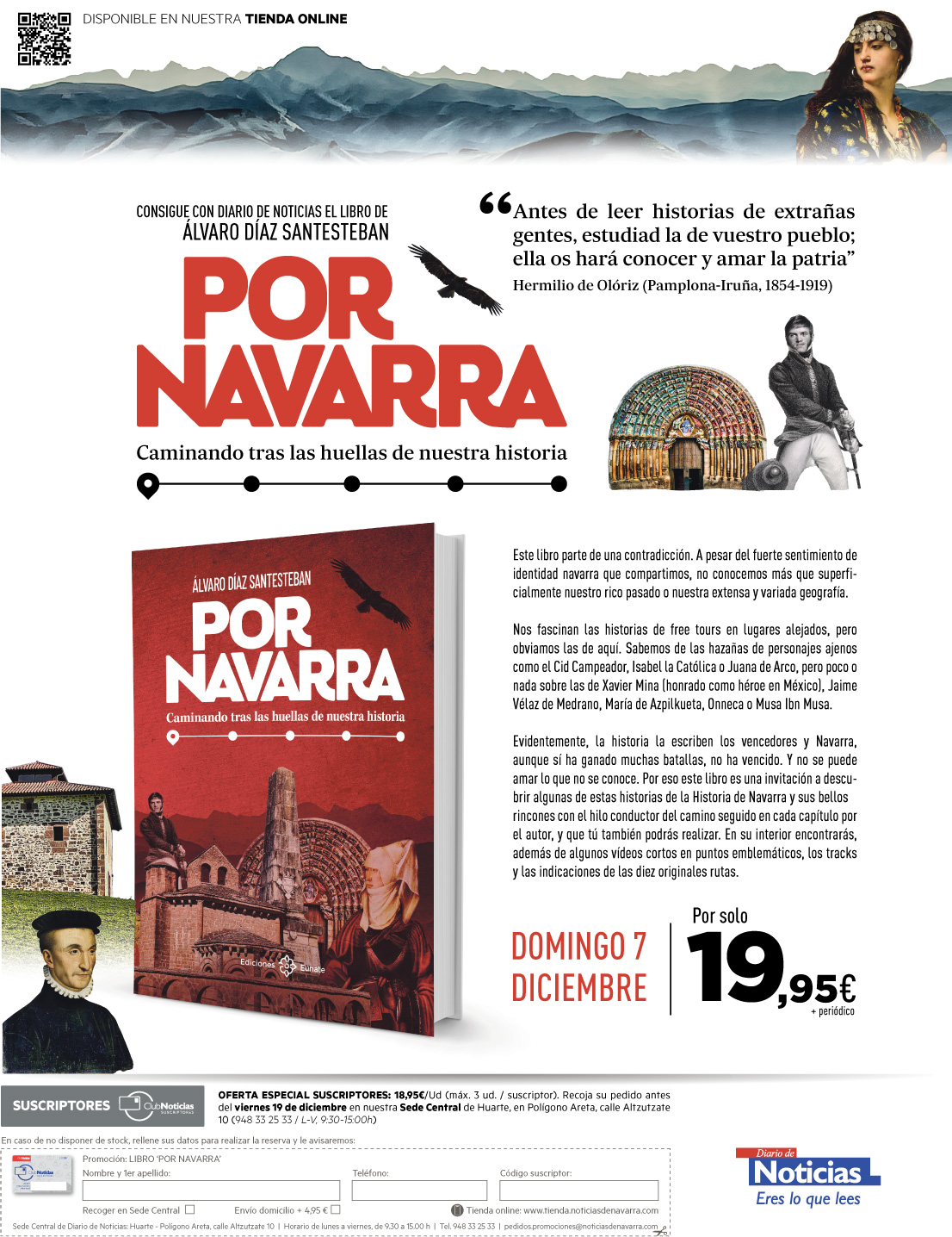 También puedes solicitarlo en nuestra sede central en Huarte (Polígono Areta, C/ Altzutzate, Nº10) de lunes a viernes de 09.00 a 15.00h, en el teléfono 948 33 25 33 o en el email pedidos.promociones@noticiasdenavarra.com