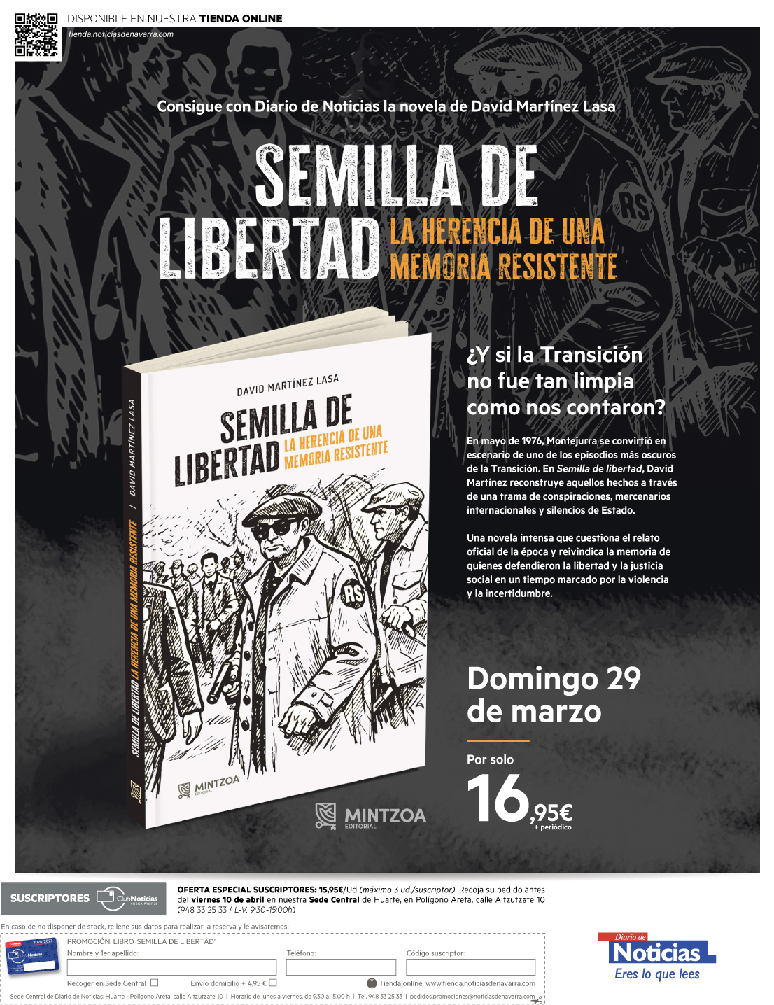 Consigue con Diario de Noticias la novela de David Martínez Lasa, SEMILLA DE LIBERTAD. LA HERENCIA DE UNA MEMORIA RESISTENTE.