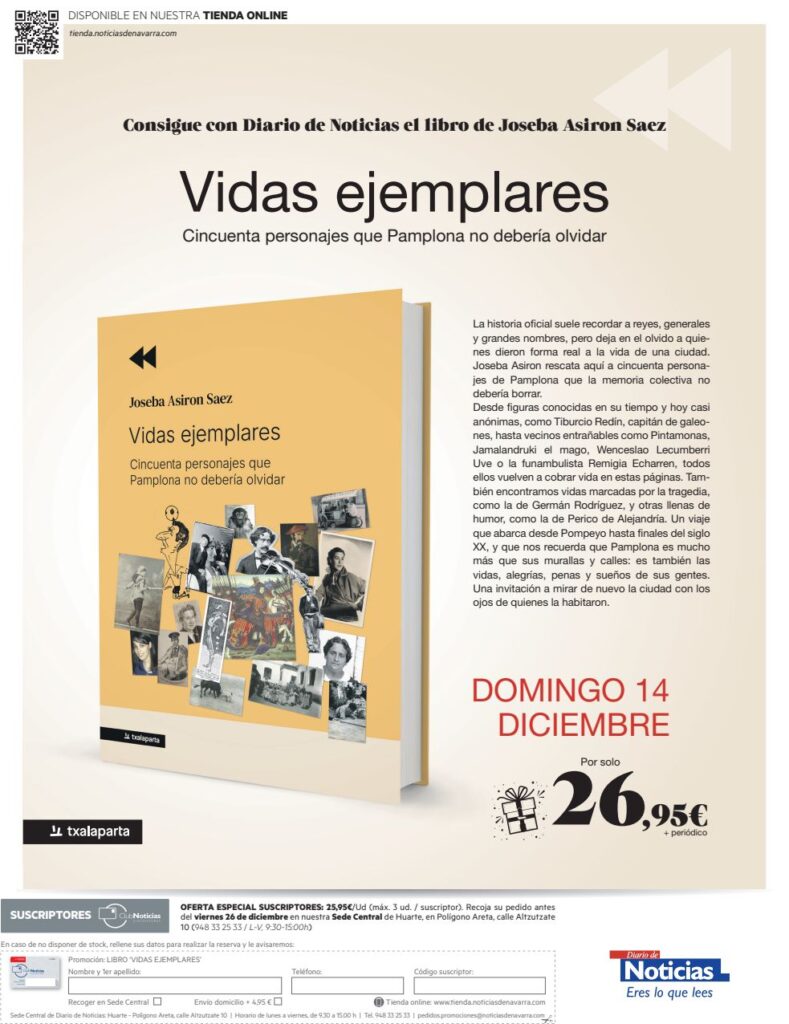 Consigue con Diario de Noticias el libro de Joseba Asiron Saez, Vidas ejemplares. Cincuenta personajes que Pamplona no debería olvidar.