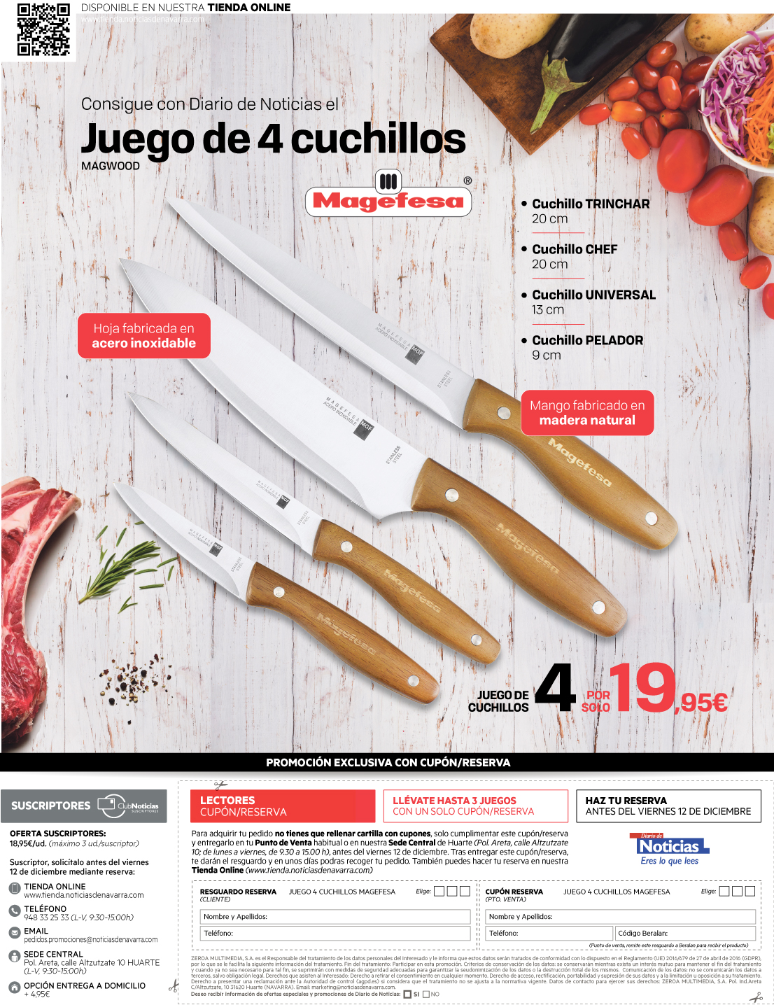 Consigue con Diario de Noticias este JUEGO DE 4 CUCHILLOS MAGWOOD de Magefesa.