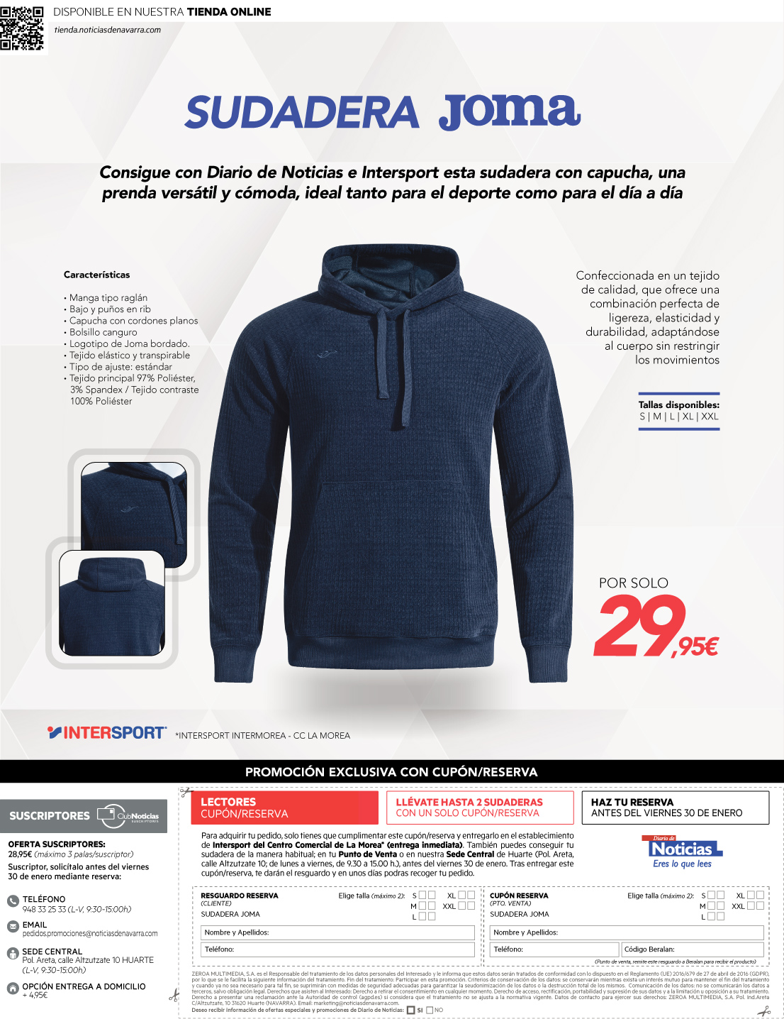 También puedes solicitarlo en nuestra sede central en Huarte (Polígono Areta, C/ Altzutzate, Nº10) de lunes a viernes de 09.00 a 15.00h, en el teléfono 948 33 25 33 o en el email pedidos.promociones@noticiasdenavarra.com